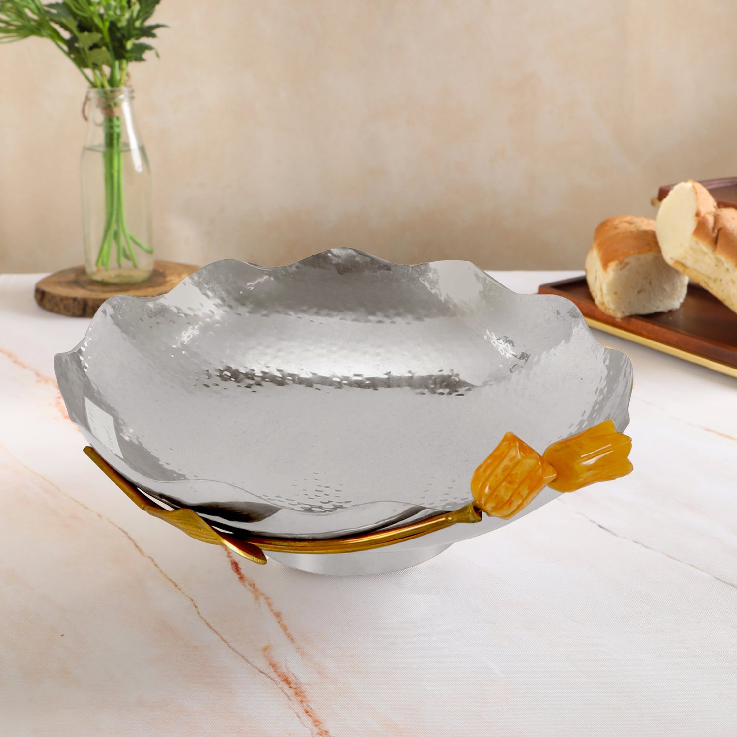 Brass Silver Plated Handi Shape Bowl With Pink Resin Base Small 4'