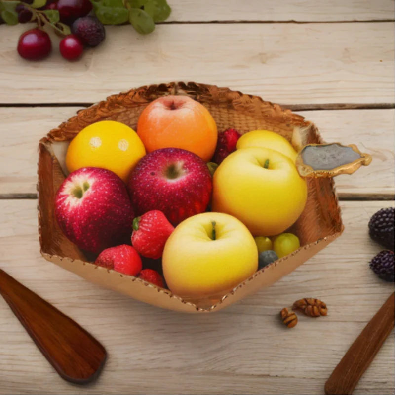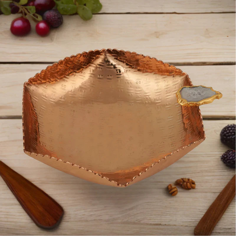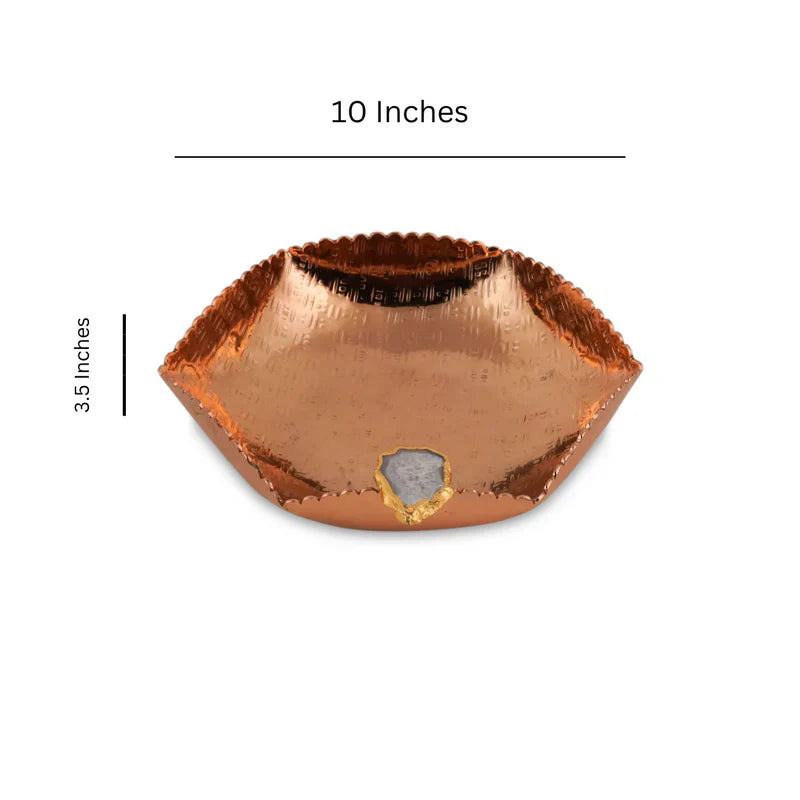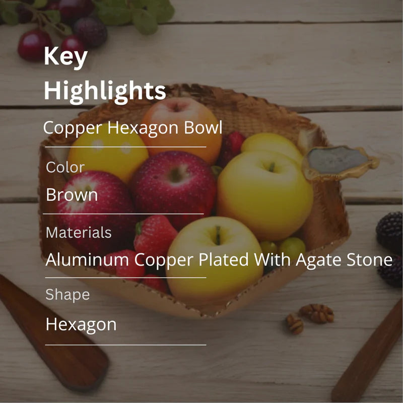 Metal Copper Plated Hexagon Bowl With Agate Stone